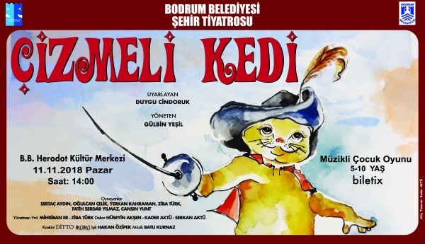 Bodrum Belediyesi Şehir Tiyatrosu, 11 Kasım 2018 Pazar Günü Saat 14.00'da Herodot Kültür Merkezi'nde sezonu "Çizmeli Kedi" adlı Çocuk Oyunu ile açıyor.