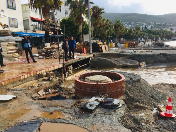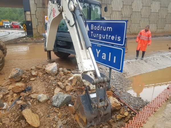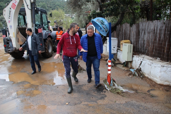 Bodrum Belediye Başkan Yardımcısı Taner Uslu, "Yağmurun ilk başladığı saatlerden itibaren ekiplerimiz ile birlikte sahada çalışmaya başladık. Tabi kısa sürede metrekareye 150 kilogram yağış düşünce, bazı dere yataklarında su taşkınları yaşandı. Ekiplerimiz, vatandaşlarımız mağdur olmasınlar diye gece saat 1’den itibaren iş makinalarıyla çalışmaya devam ediyorlar. Bodrum Kaymakamlığımız, Muğla Büyükşehir Belediye Başkanımız, Bodrum Belediyesi ekiplerimiz koordinasyon halinde vatandaşların mağduriyetini gidermek için ve hasar tespiti yapmak için sahadalar" dedi.