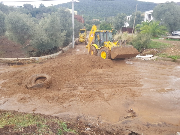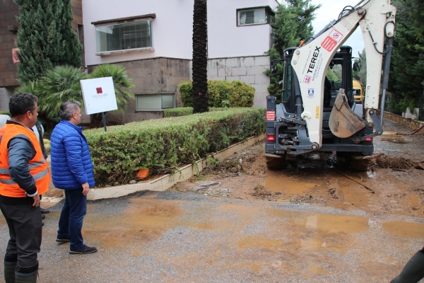 Yağmurun başladığı ilk andan itibaren Bodrum Belediyesi ekipleri, sahada çalışmalarını sürdürüyor.
