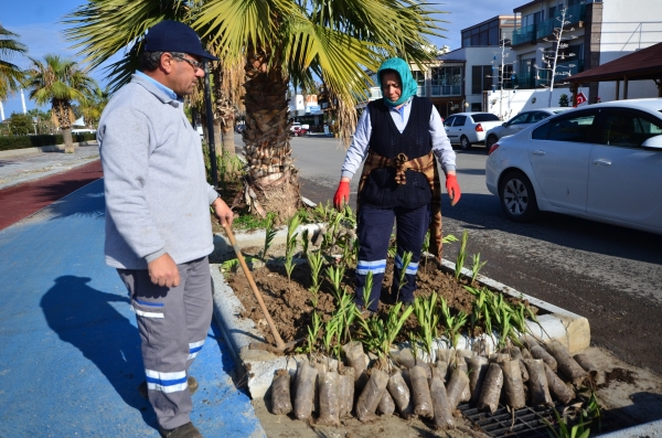 Sahil bandı, çevre düzenleme ve alt yapı çalışmalarının hemen ardından Bodrum Belediyesi Park ve Bahçeler Müdürlüğü ekipleri de sahaya inerek alanı yeşillendirmek için ivedilikle çalışmalarına başladı.