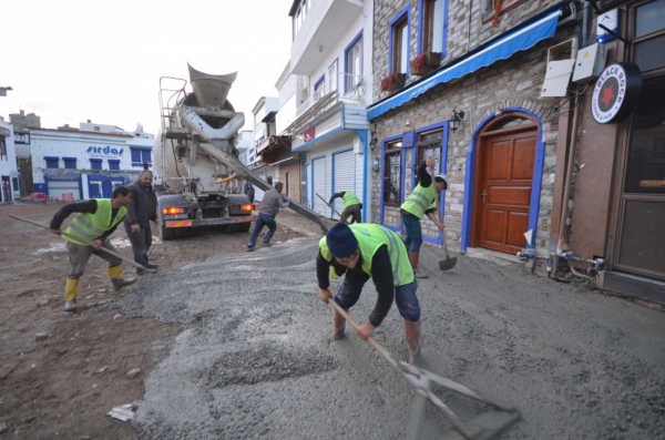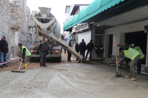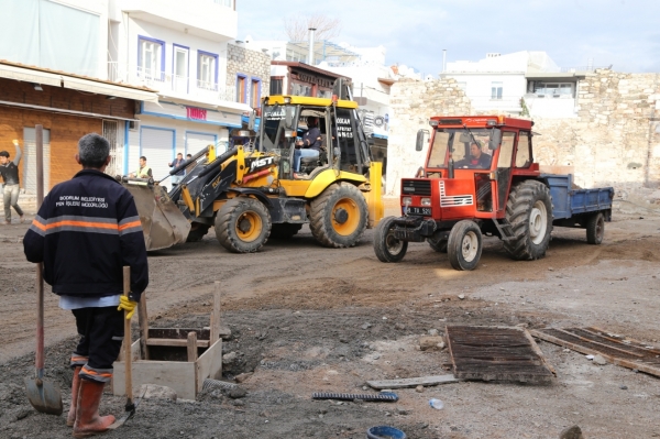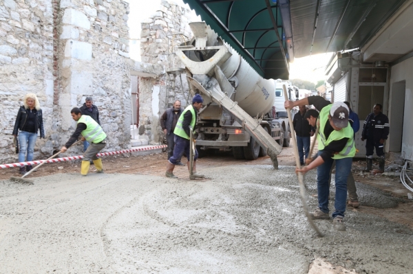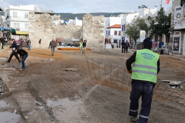 Çarşı Mahallesi’nin tamamında Muğla Büyükşehir Belediyesi MUSKİ ile Bodrum Belediyesi ekiplerinin koordineli olarak yaptıkları çalışmalarda, yağmur suyu kanalları, eskiyen kanalizasyon bağlantıları ve içme suyu borularının yenileneceği ve zeminin yaklaşık 12 bin metrekare doğal traverten taşlarla kaplanacağı belirtildi.