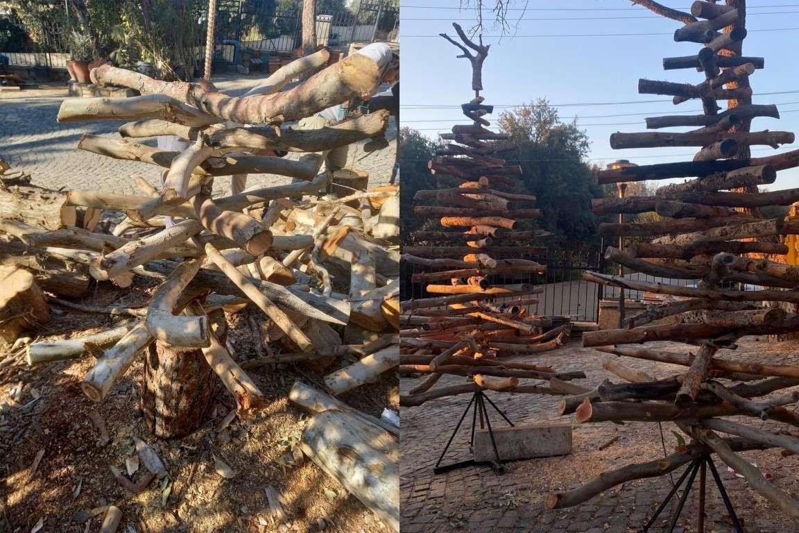 Park ve Bahçeler Müdürlüğümüz, çevre dostu yaklaşımla ağaç budama çalışmalarından biriktirdiği odun ve dalları değerlendirerek yeni yıl süslemeleri kapsamında ağaç budama çalışmalarından arta kalan odun ve dalları değerlendirerek yılbaşı ağacı yaptı.