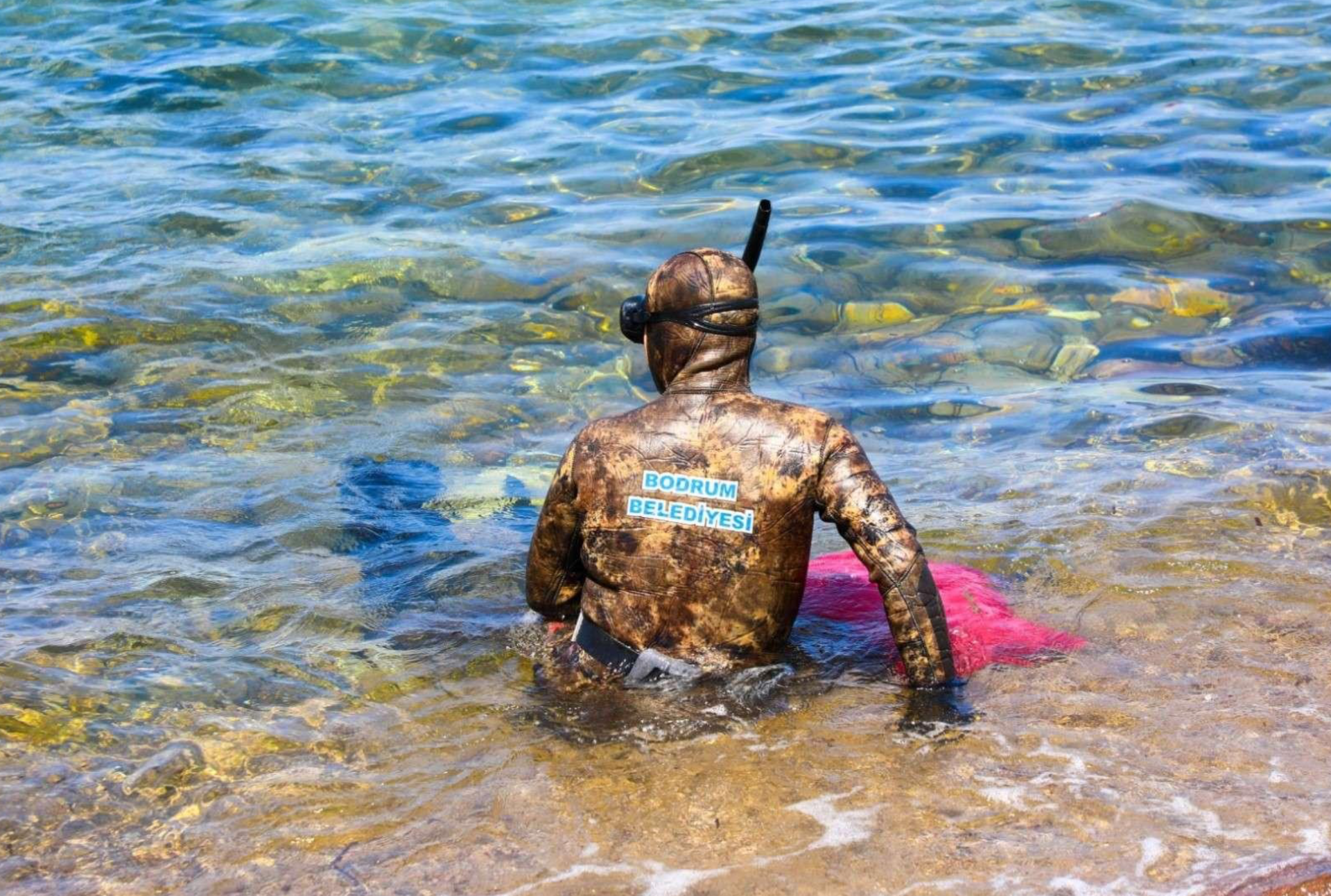 “Denize En Çok MAVİ Yakışır” sloganıyla yürüttüğümüz Deniz Dibi Temizliği’nin altıncı etabını, Destek Hizmetleri Müdürlüğümüz ile Temizlik İşleri Müdürlüğümüzün organizasyonunda Turgutreis’te gerçekleştirdik. On bir yıldır Bodrum’un eşsiz mavisini korumak amacıyla sürdürdüğümüz çalışmada, belediye personelinden oluşan gönüllü dalış ekibimiz deniz dibinden 62 kilogram atık çıkardı. Atıkları sahilde sergileyerek farkındalık oluşturduk, ardından geri dönüşüm için Konacık Mahallesi’ndeki 1. Sınıf Atık Getirme Merkezimize teslim ettik.