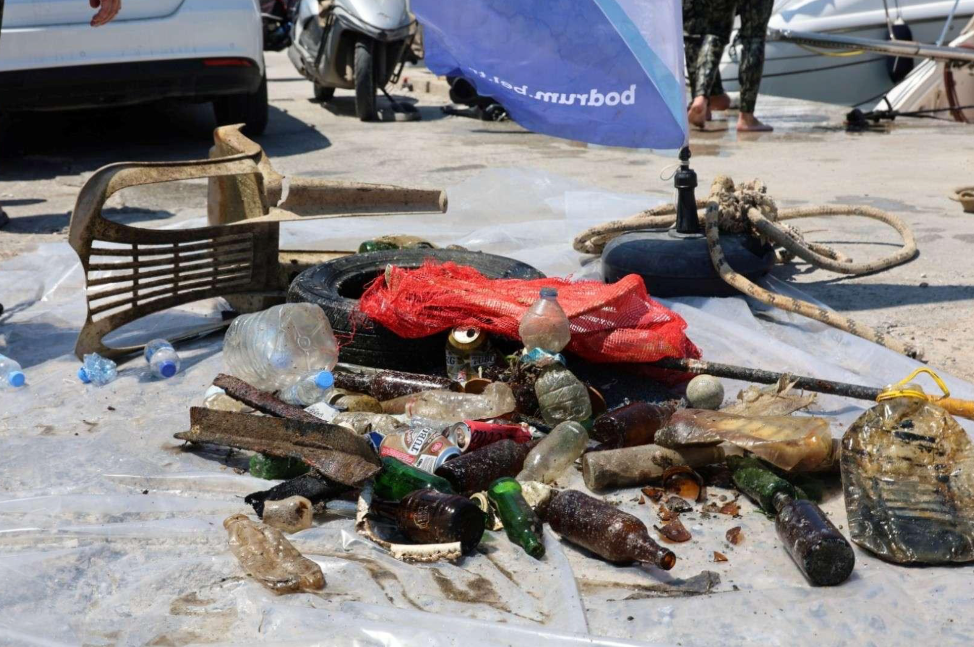 Gönüllü dalış ekibimiz tarafından denizden 168 kilogram atık çıkarılmış, atıklar farkındalık amacıyla limanda sergilenmiş ve ardından geri dönüşüm için 1. Sınıf Atık Getirme Merkezimize nakledilmiştir.