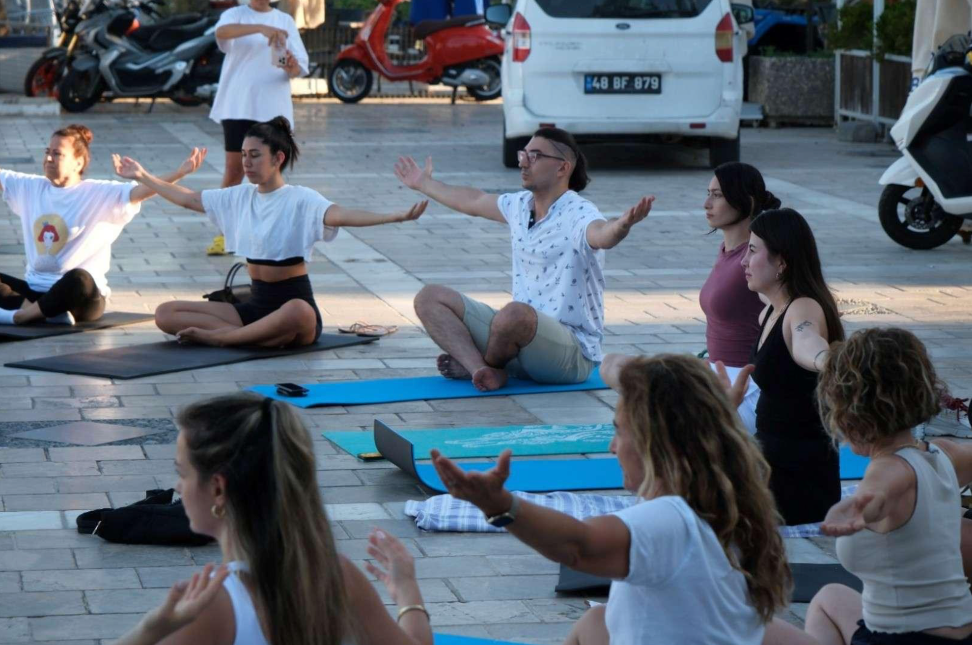 Kültür ve Sosyal İşler Müdürlüğümüz tarafından “Bodrum’la Nefes Al” temasıyla düzenlenen Açık Hava Yoga Günlerinin ilki Kumbahçe Meydanı’nda gerçekleştirilmiştir. Bodrum’un eşsiz sabah manzarası eşliğinde yaklaşık bir saat süren etkinlikte katılımcılara fiziksel ve ruhsal dinlenme imkânı sunulmuştur.