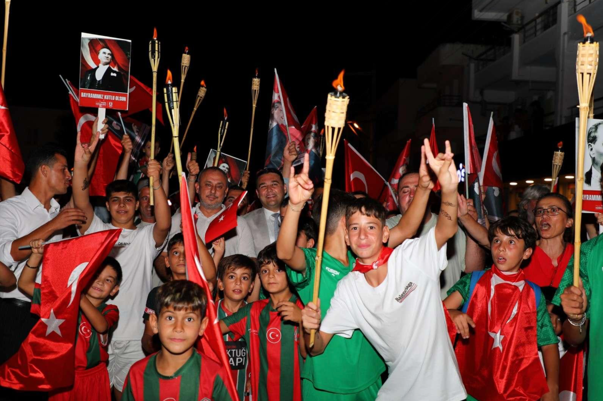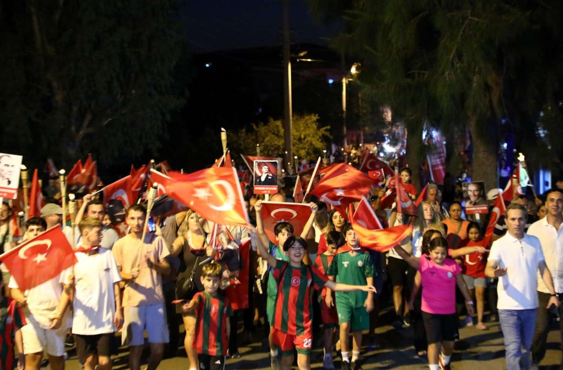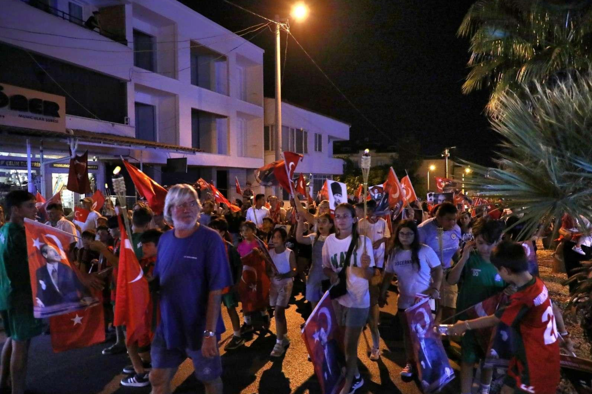 Eş zamanlı olarak, Milta Bodrum Marina önünden Bodrum Belediye Meydanı’na, Akçaalan Çok Amaçlı Salon’dan Turgutreis Atatürk Meydanı’na, Yalıkavak Belediye Kafe’den Yalıkavak Atatürk Meydanı’na ve Mustafa Kallem Parkı’ndan Mumcular Cumhuriyet Meydanı’na kadar fener alayı yürüyüşü gerçekleştirildi.