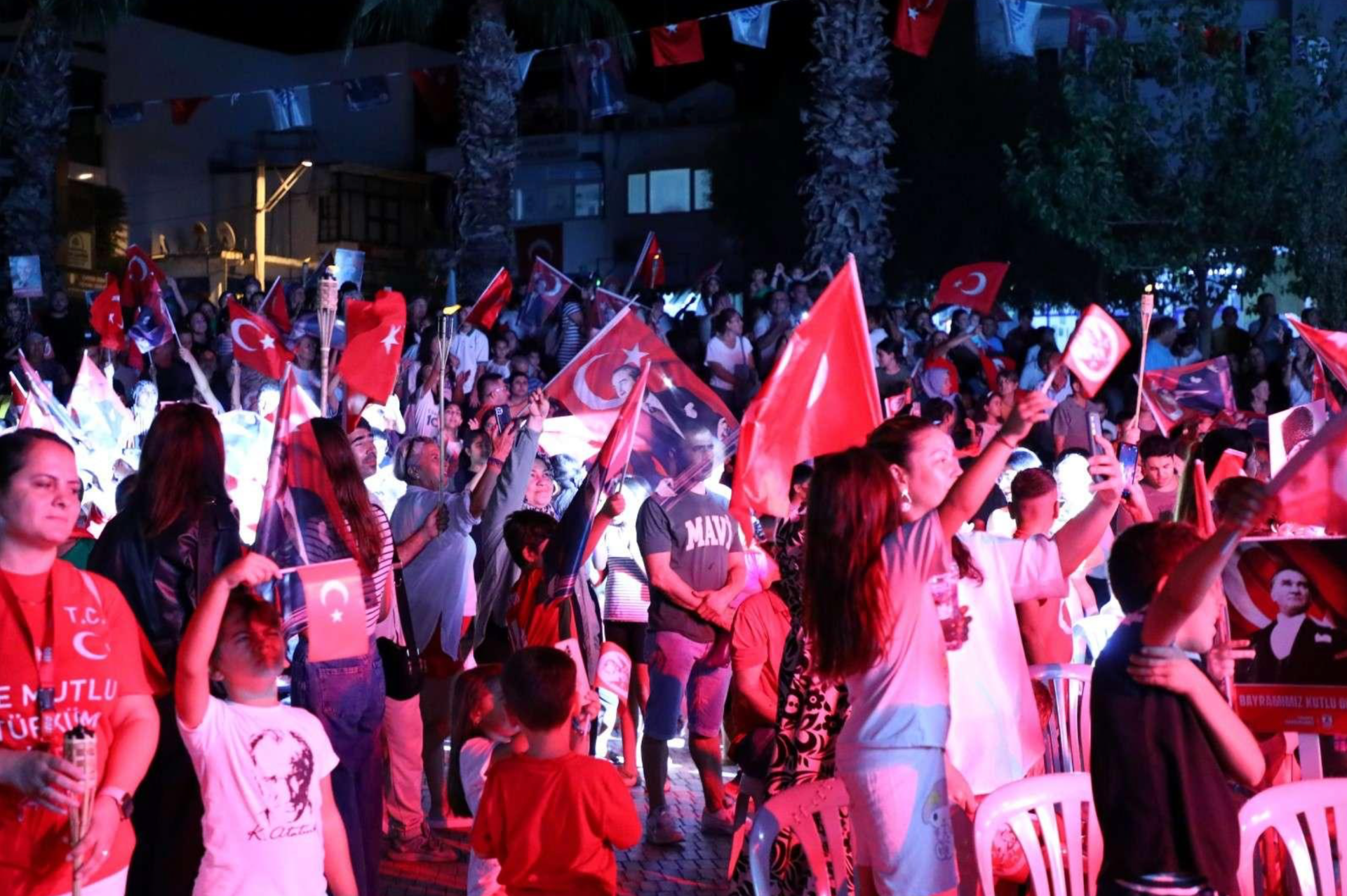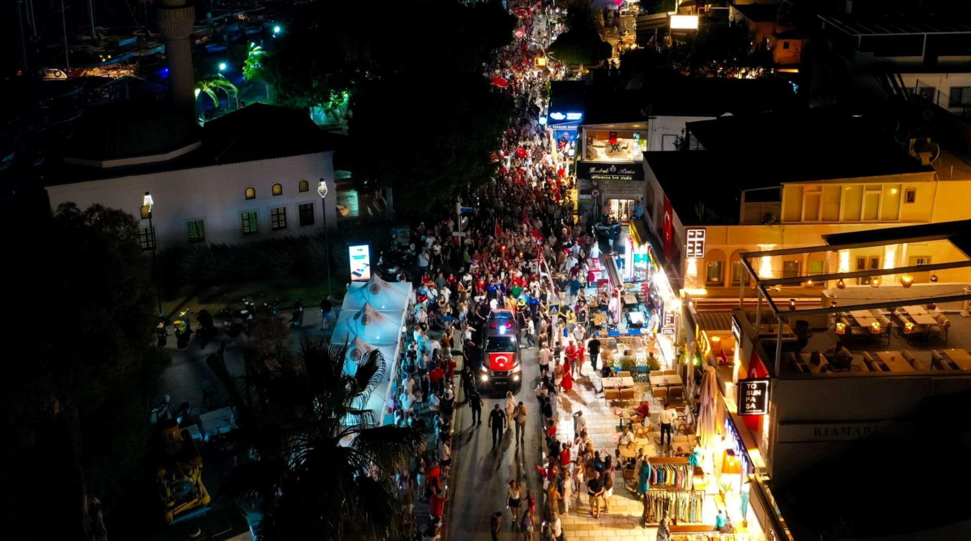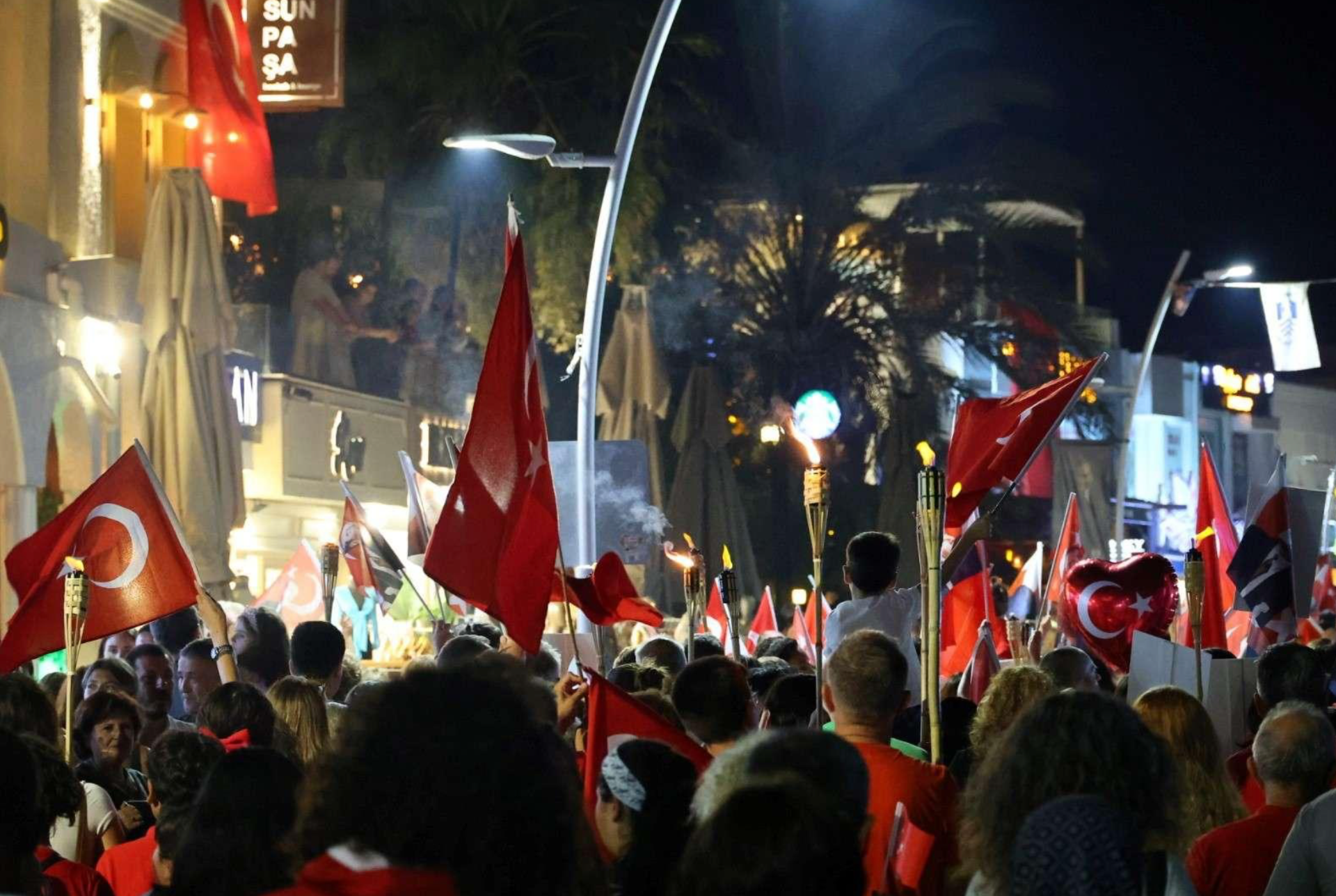 Eş zamanlı olarak, Milta Bodrum Marina önünden Bodrum Belediye Meydanı’na, Akçaalan Çok Amaçlı Salon’dan Turgutreis Atatürk Meydanı’na, Yalıkavak Belediye Kafe’den Yalıkavak Atatürk Meydanı’na ve Mustafa Kallem Parkı’ndan Mumcular Cumhuriyet Meydanı’na kadar fener alayı yürüyüşü gerçekleştirildi.