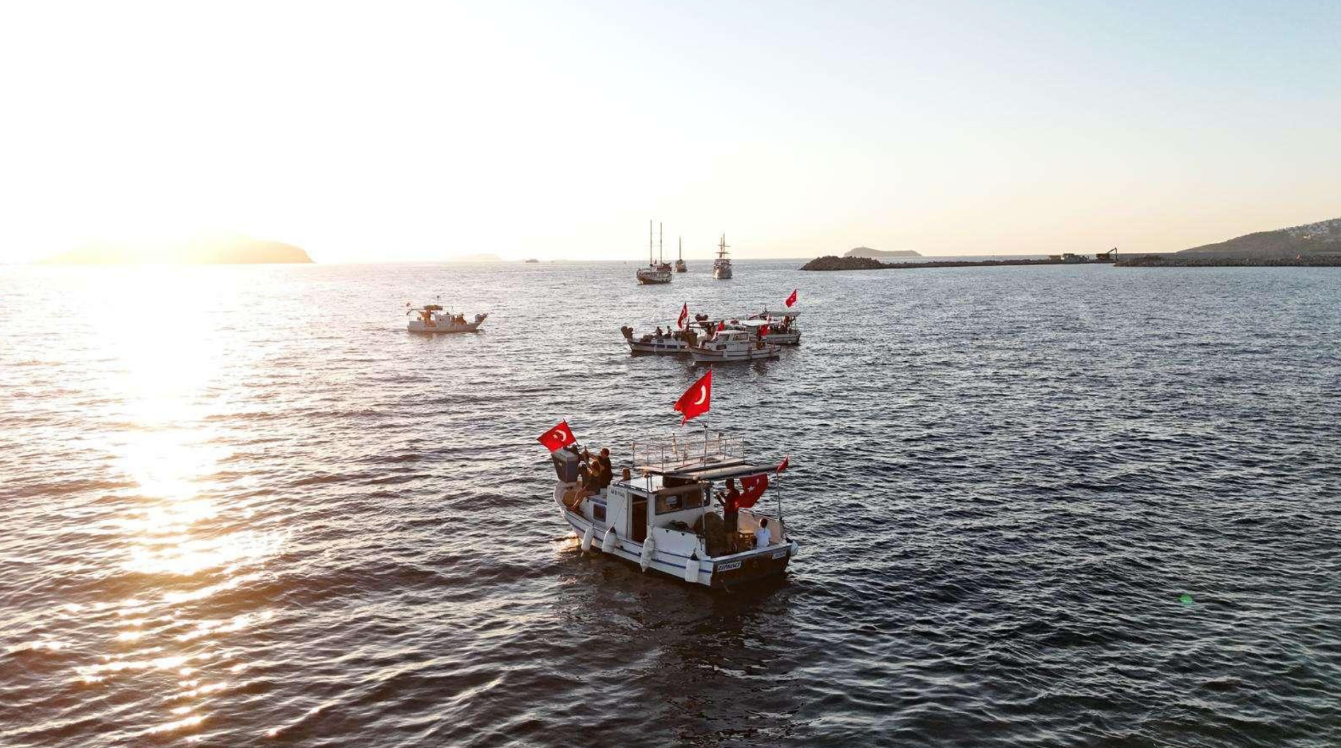 Gündoğan Spor Kulübü öncülüğünde Gündoğan Halk Plajı açıklarında, Turgutreis Su Ürünleri Kooperatifimiz bünyesindeki balıkçı ve tur teknelerinin katılımıyla Turgutreis açıklarında Zafer Kortejleri düzenlendi.