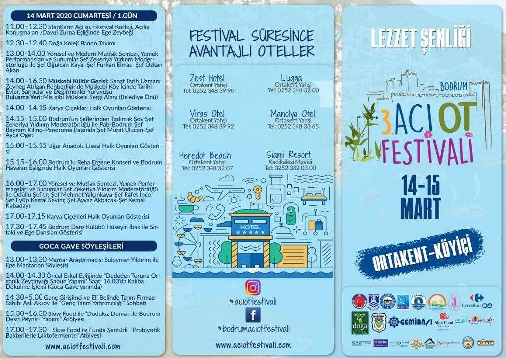 Bodrum Belediyesi’nin destekleriyle Ortakent Yahşi Güzelleştirme Derneği-OYDER tarafından Bodrum, Muğla ve ilçeleri ile Ege’nin pek çok bölgesinden özel turların düzenlendiği ve milyonları buluşturan Acı Ot Festivali, 14-15 Mart tarihleri arasında gerçekleşti.