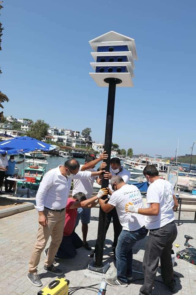 Bodrum Belediyesi Çevre Koruma ve Kontrol Müdürlüğümüz tarafından hazırlanan mavi-beyaz güvercinlikler, Güvercinlik sahiline yerleştirildi.