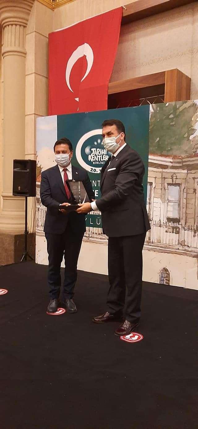 Ödül, Tarihi Kentler Birliği İstanbul buluşmasında, Belediye Başkanımız Ahmet Aras’a takdim edildi.