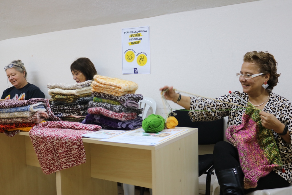 Belediyemiz ve Kadın Danışma ve Eğitim Merkezi (KADEM) işbirliğiyle başlatılan “Pamuk Eller Canlara” projesi ile barınakta yaşayan can dostlarımızın soğuktan korunması için el emeği örgüler yapıldı