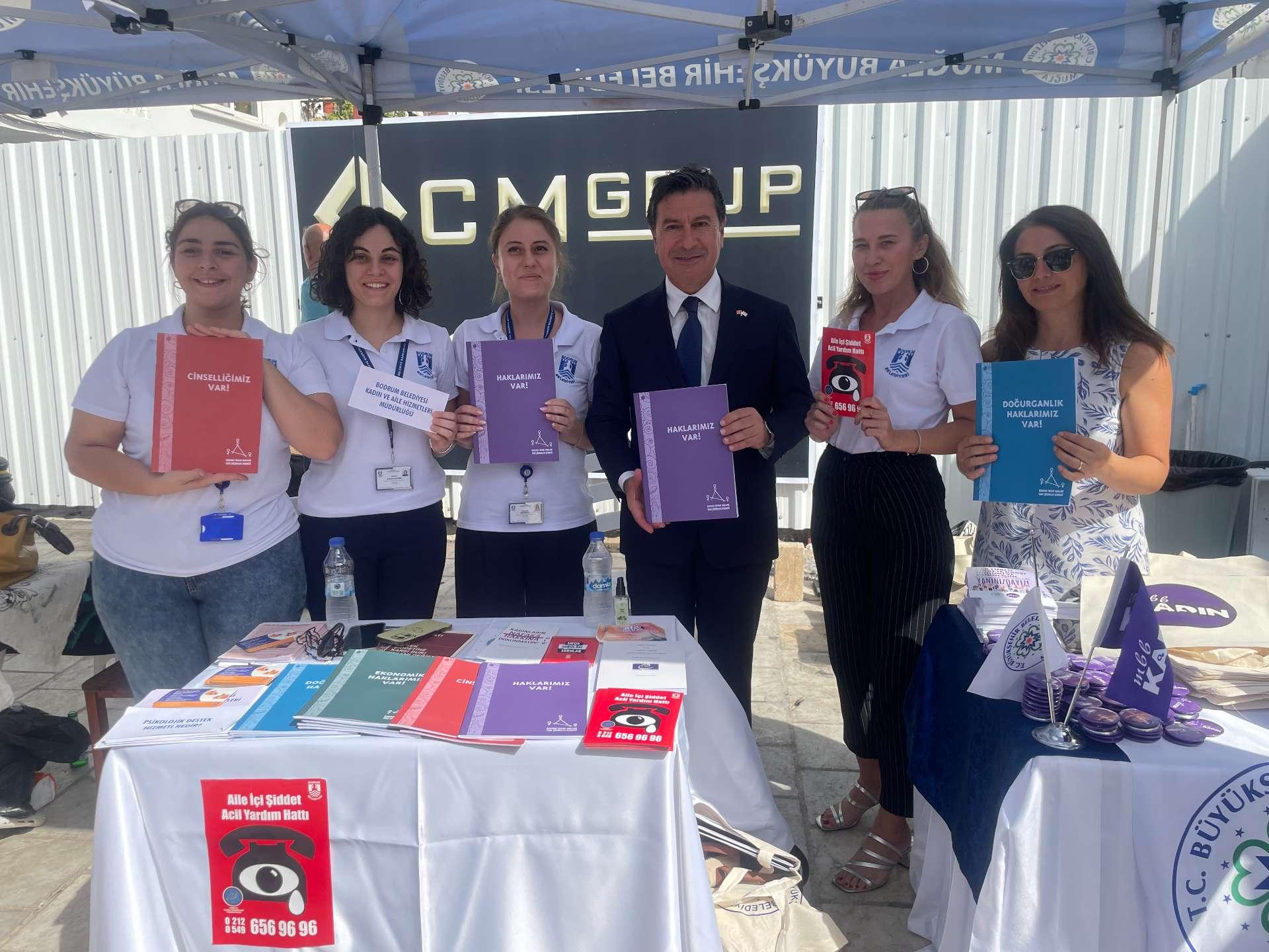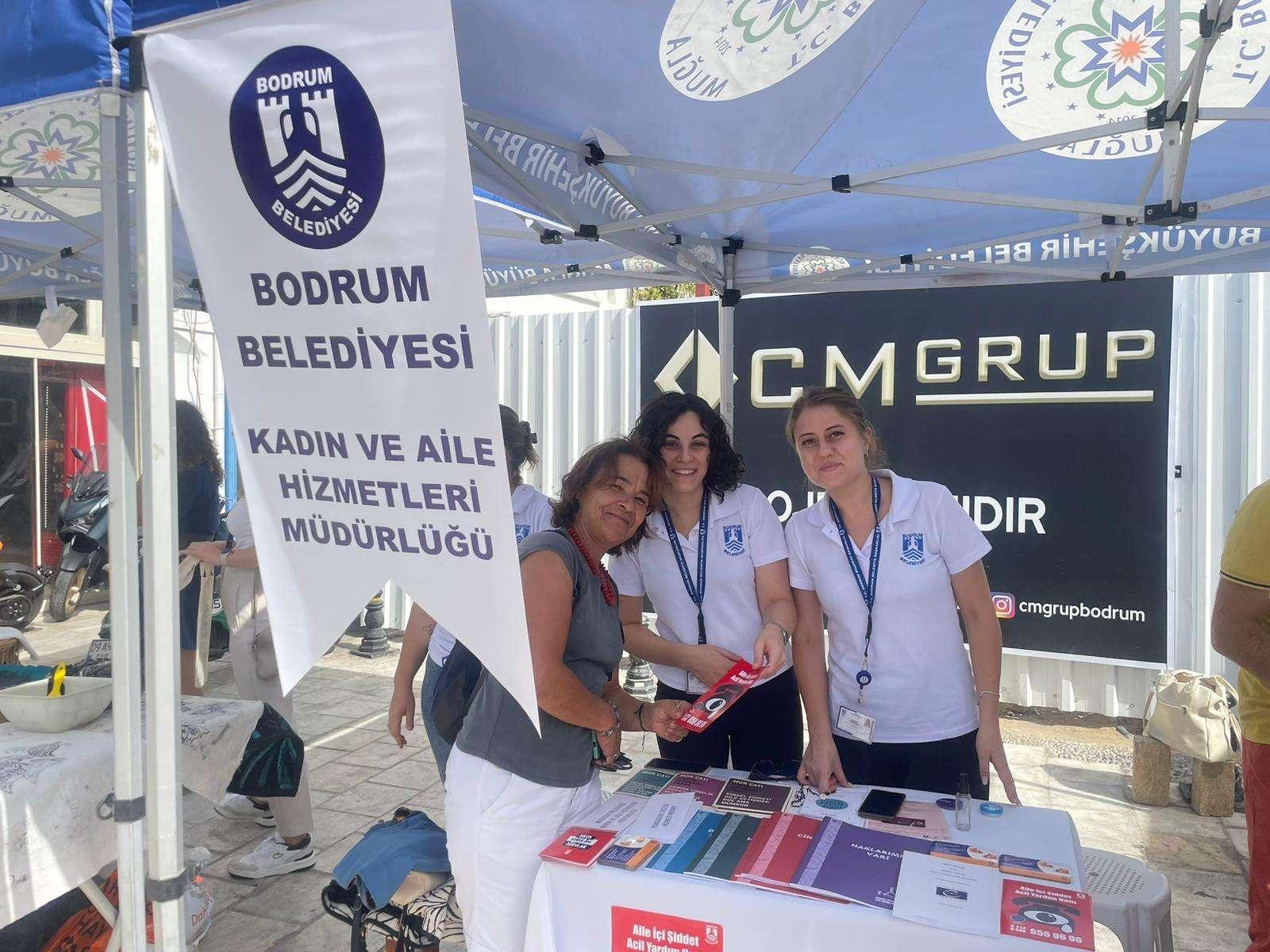 Bodrum Kumbahçe Meydanı'nda 12-13 Ekim 2024 tarihlerinde düzenlenen 5. Uluslararası İki Yaka Kültür Festivaline katılım sağlayan Muğla Büyükşehir Belediyesi Kadın ve Aile Hizmetleri Daire Başkanlığı ile Bodrum Belediyesi Kadın ve Aile Hizmetleri Müdürlüğü ekipleri, etkinlikte yan yana açtıkları stantta koordineli şekilde tanıtım çalışması yaparak farkındalığın artırılması amacıyla hazırlanan kitapçık ve broşürlerden dağıttı.