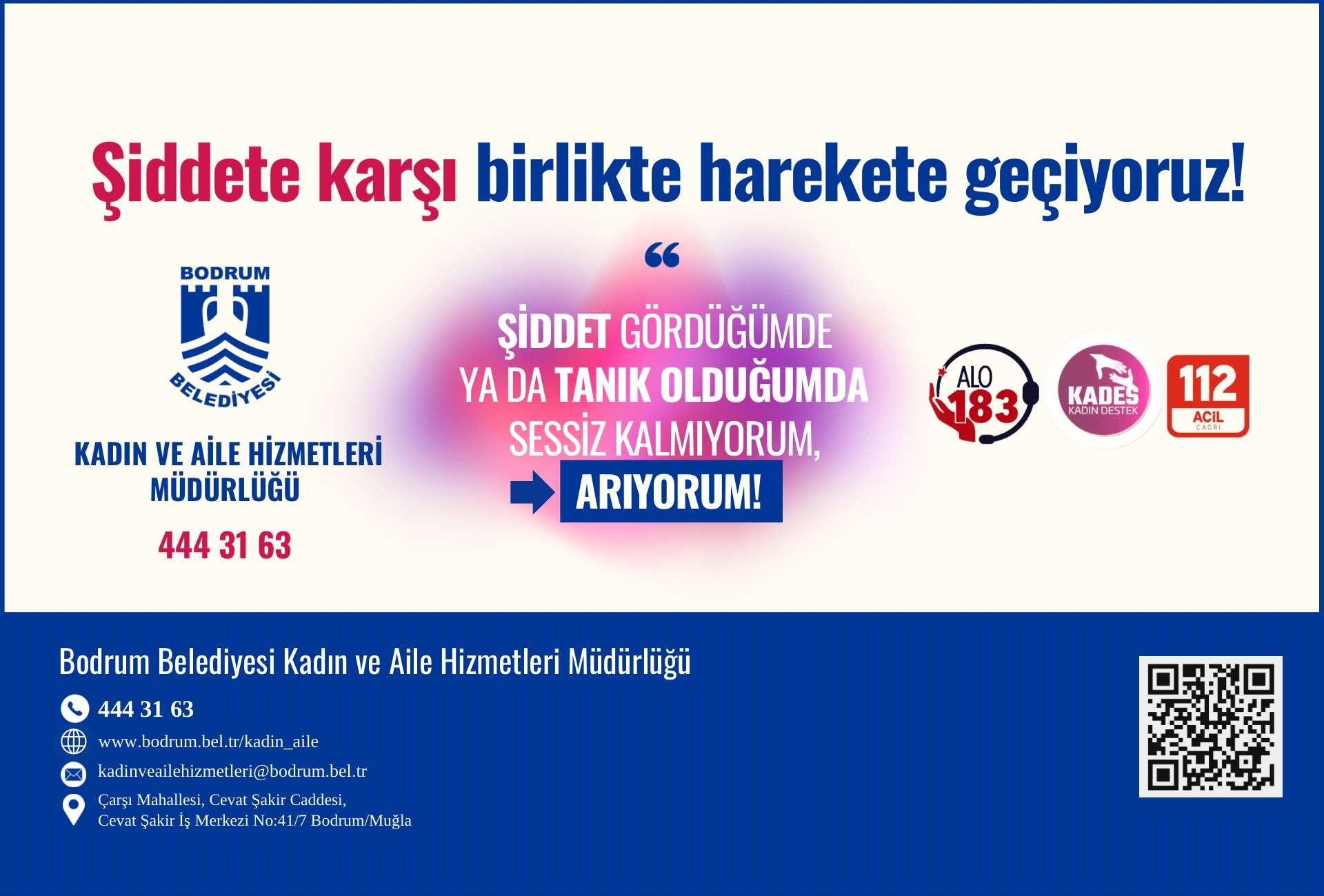 Bodrum Belediyesi Kadın ve Aile Hizmetleri Müdürlüğü olarak şiddete karşı hep birlikte hareket ediyoruz.