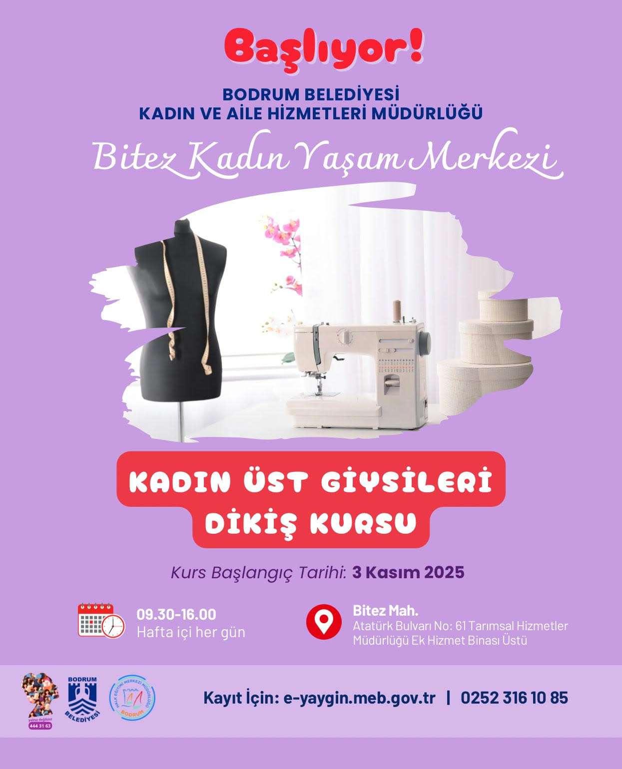Bodrum Belediyesi Kadın ve Aile Hizmetleri Müdürlüğü ve Bodrum Halk Eğitim Merkezi Müdürlüğü işbirliği ile Bitez Kadın Yaşam Merkezi'nde düzenlenen "Kadın Üst Giysileri Dikiş Kursu", başladı. Kadın ve Aile Hizmetleri Müdürü Av. K. Gözde Çakıroğlu ve ekibi kursiyer kadınları ziyaret ederek çalışmalarında başarılar diledi.